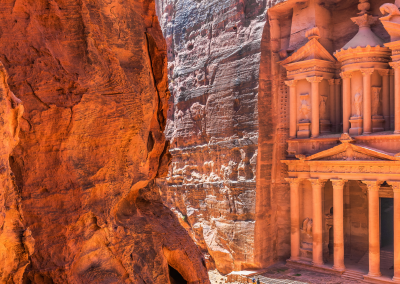 Descubre Jordania con The W Project: un viaje donde el desierto de Wadi Rum susurra historias antiguas, Petra se revela como un sueño de piedra y el Mar Muerto nos invitará a flotar en el silencio.